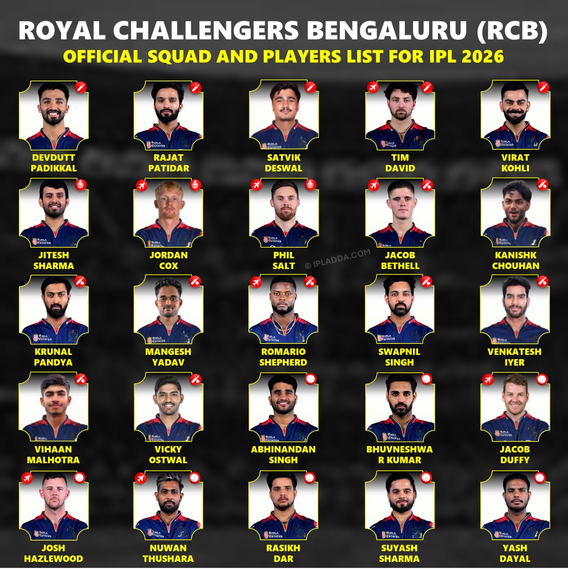 • IPL 2026 Royal Challengers Bengaluru (RCB) Full Squad Best Players List