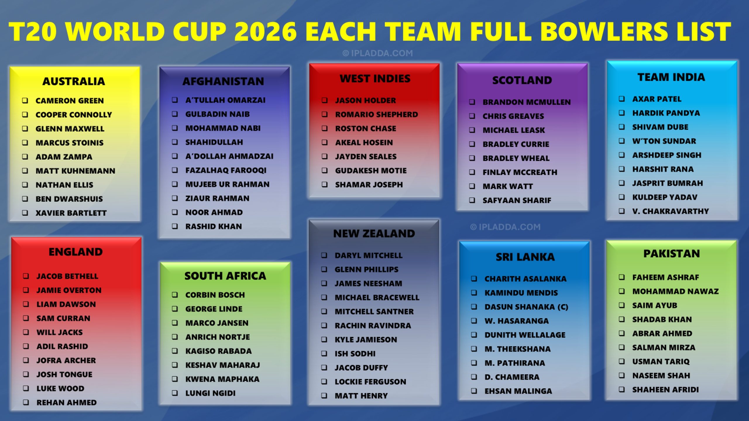 T20 World Cup 2026 Bowlers List Complete Names for All Teams